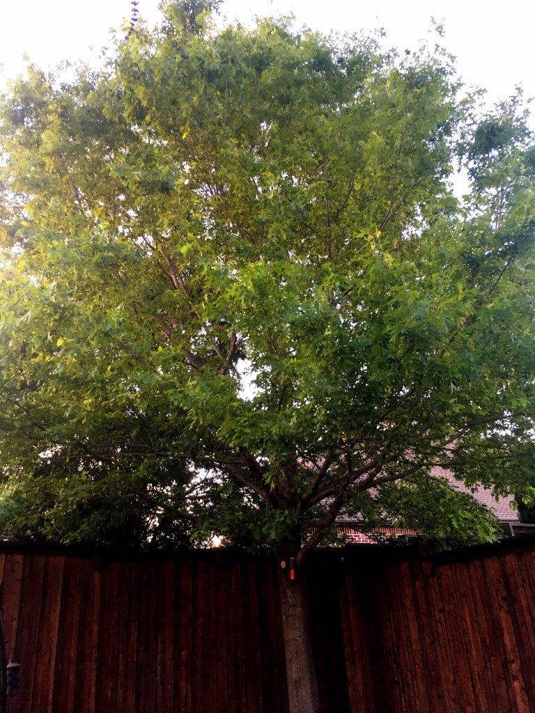 That night while we watched TV, I began tuning out the movie and tuning into that familiar sound coming from the eastern corner of the backyard. In west Texas, the wind usually subsides at night. However in north Texas it blows almost all the time. Frankly, that isn’t my favorite thing about living in the Dallas area, but you learn to adapt and to tie down your lawn furniture.